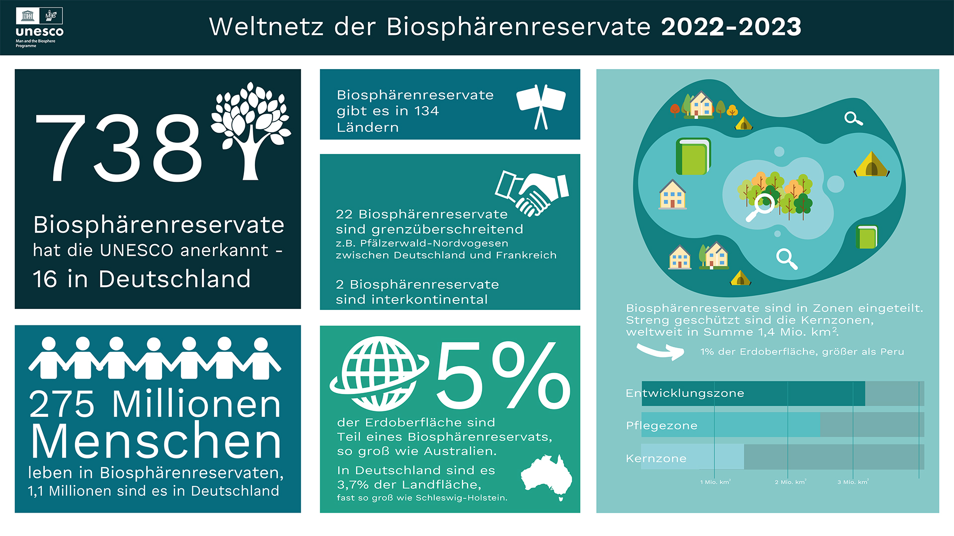 sind grenzüberschreitend und 2 Biosphärenreservate sind interkontinental
