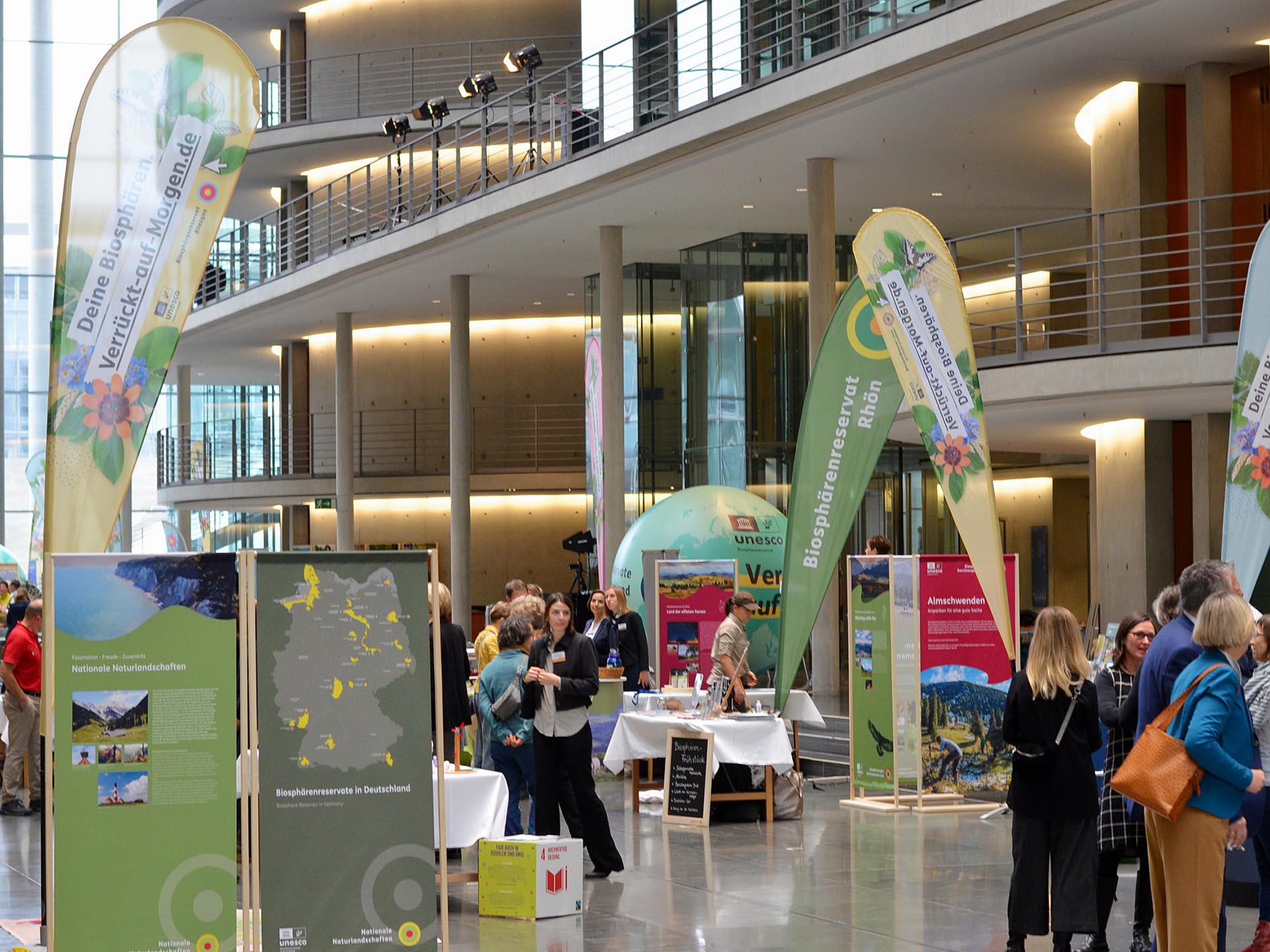 Als Höhepunkt der Kampagne präsentierten die deutschen Biosphären sich und ihre Themen den Abgeordneten des deutschen Bundestages bei einer Veranstaltung im Paul-Löbe-Haus in Berlin. Dabei wurde die Rolle der Biosphärenreservate als Modellregionen für nachhaltige Entwicklung in den Fokus gerückt und an zahlreichen Beispielen gezeigt, wie Biosphäre regional umgesetzt und die UNESCO-Auszeichnung mit Leben gefüllt werden kann. Auch die Verwaltungsstelle der Biosphärenregion Berchtesgadener Land nutzte die Chance und stellte die Region mit ihren zahlreichen nachhaltigen Initiativen und Projekten vor.