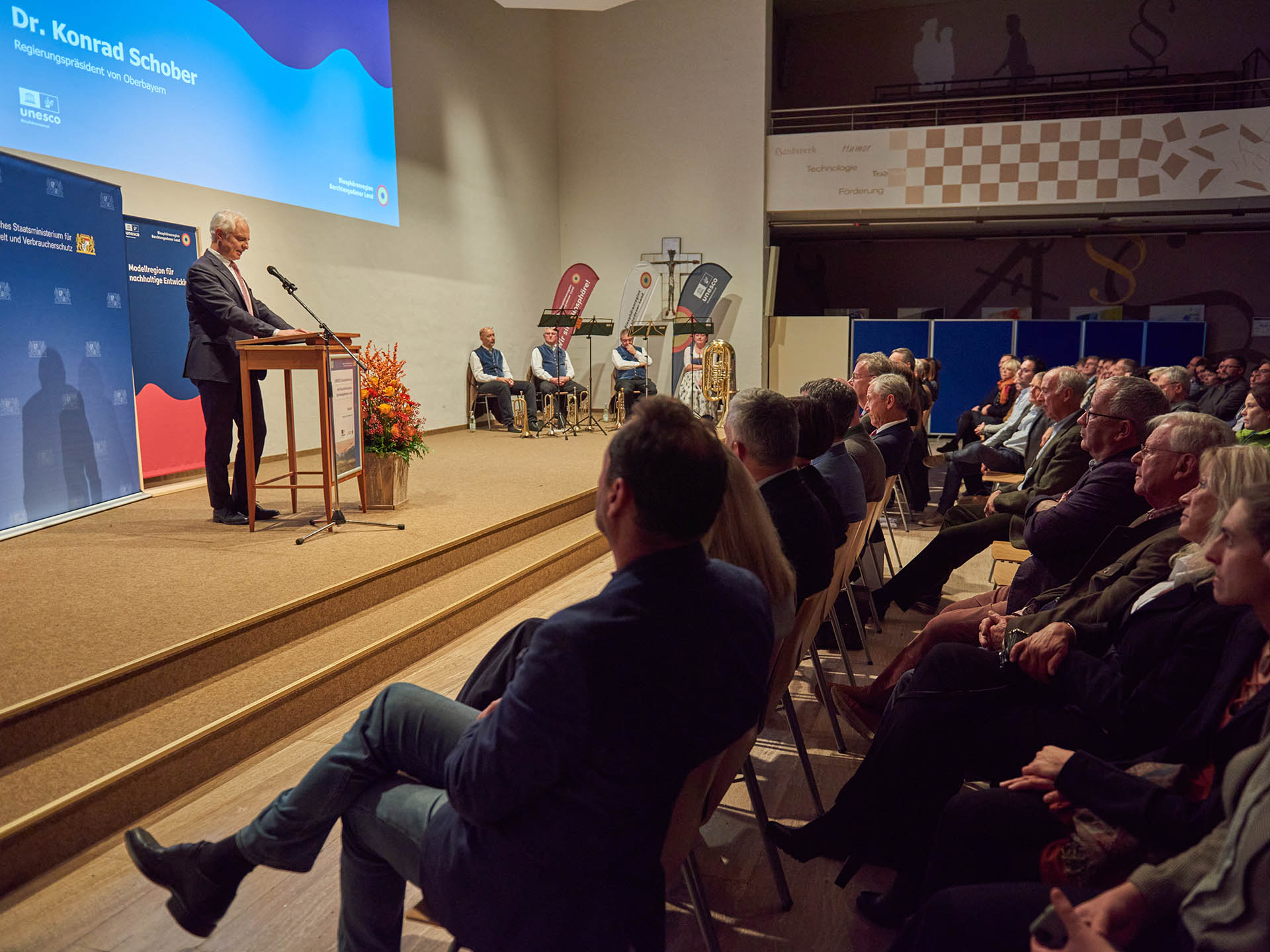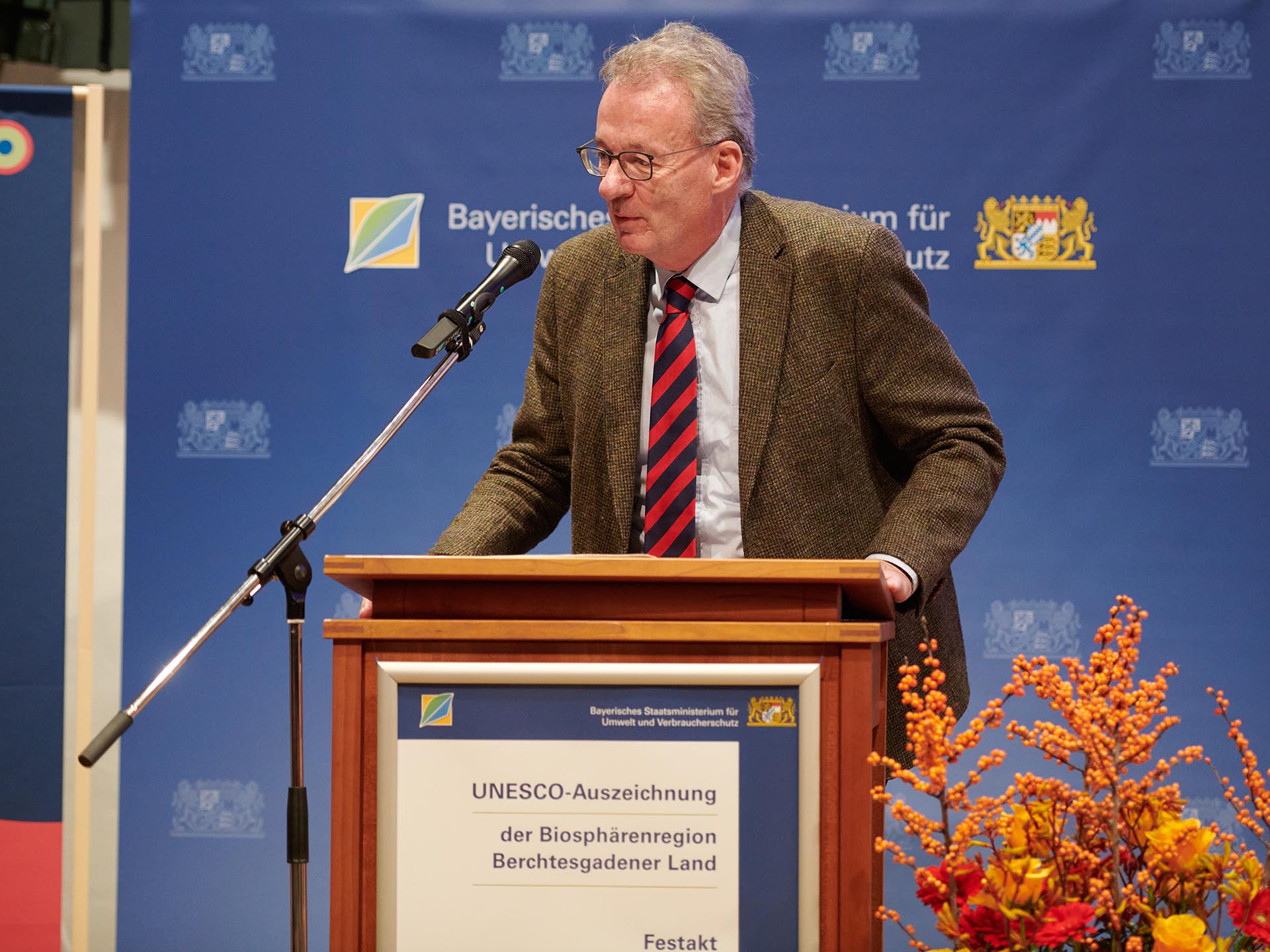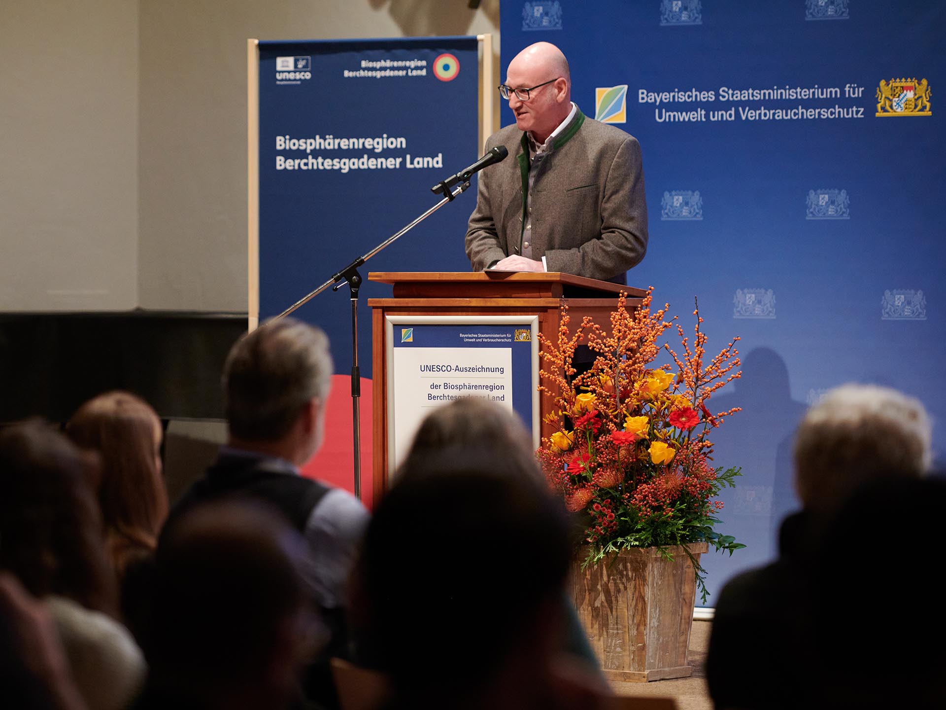 Den Festakt anlässlich dieser erneuten Auszeichnung eröffneten Regierungspräsident Dr. Konrad Schober sowie Landrat Bernhard Kern mit Grußworten. „Biosphärenregion zu sein ist gleichermaßen eine Auszeichnung, aber auch ein Auftrag und eine Verpflichtung,“ so Regierungspräsident Dr. Schober, „mit dem besonderen Gut, das diese Region hat, verantwortungsvoll umzugehen und es gut weiterzuentwickeln. Ich freue mich, dass die Regierung von Oberbayern mit ihrer Verwaltungsstelle, einer Außenstelle der Regierung von Oberbayern, einen aktiven Beitrag leisten kann.“