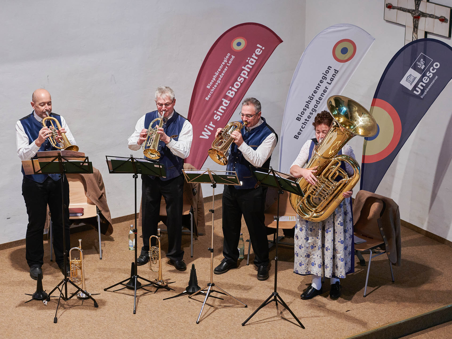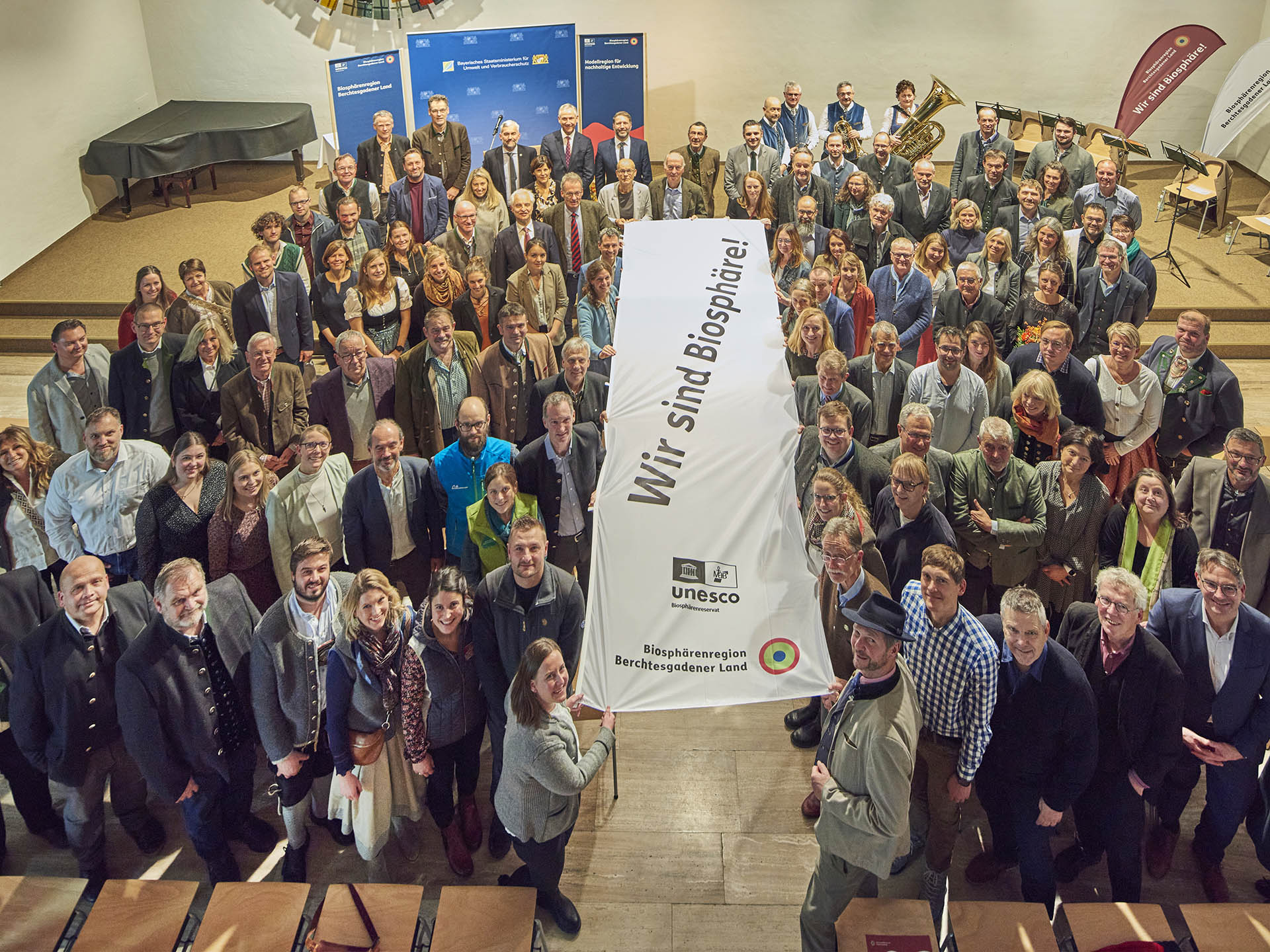 Die Region präsentierte sich im Rahmen des Festaktes gemeinsam mit der Biosphären-Verwaltungsstelle unter dem Programmpunkt „Das ist die Biosphäre!“ mit abwechslungsreichen Wort- und Filmbeiträgen sowie Fotopräsentationen zu den vielfältigen Handlungsfeldern und Aktivitäten in der Biosphärenregion, musikalisch untermalt durch „BrucknBlech“. Kulinarisch wurden die Gäste mit Biosphären-Produkten sowie regionalen Schmankerl versorgt, federführend organisiert von den Biosphären-Partnern Metzgerei Braunsperger, Metzgerei Sichert sowie Brauerei M.C. Wieninger. Die Veranstaltung zeigte das große Engagement der regionalen Akteurinnen und Akteure sowie der Institutionen, Kommunen und des Landkreises – es zeigt: WIR SIND BIOSPHÄRE!